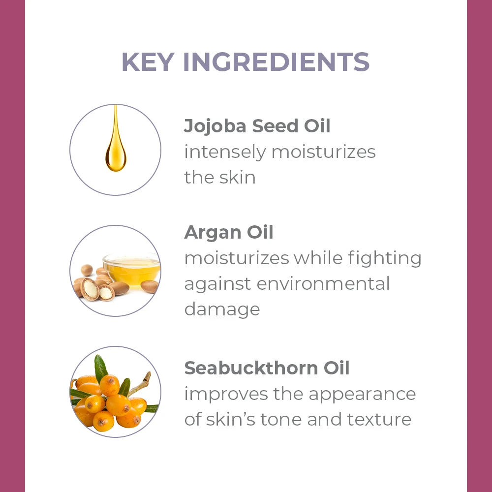 - Argan Oil: Another essential skin care oil, this helps provide antioxidant-rich moisture for healthy skin tone and renewed texture.