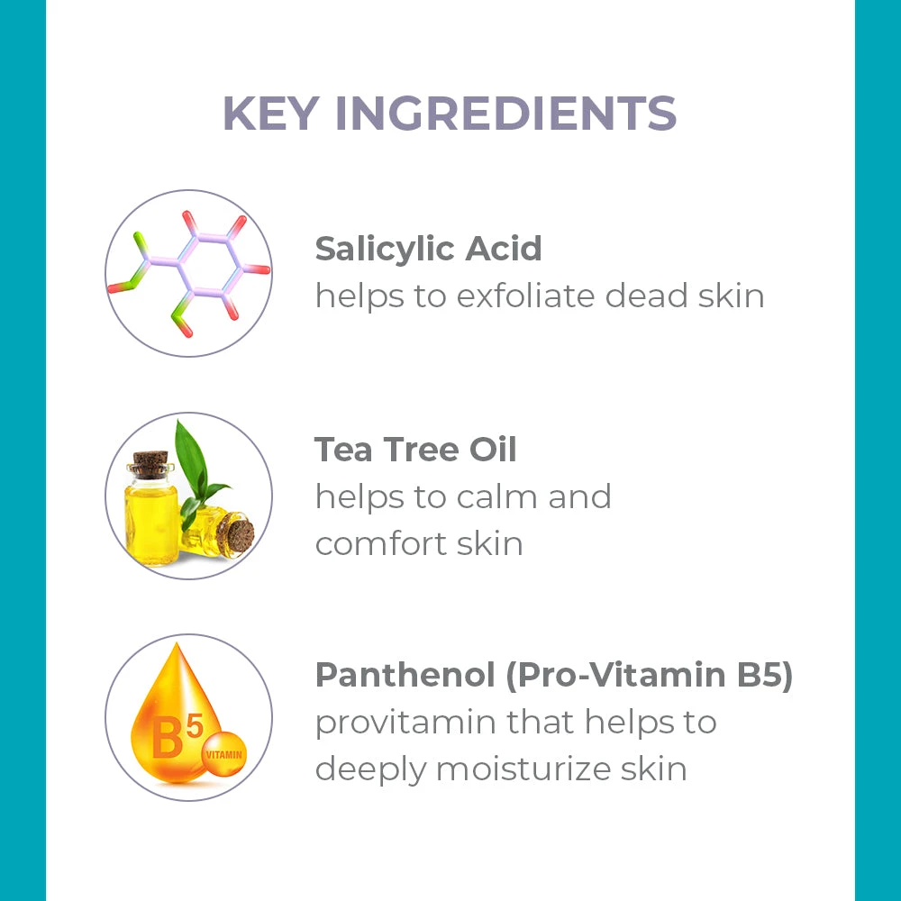 - Helps to remove dead skin and flakes with Salicylic Acid