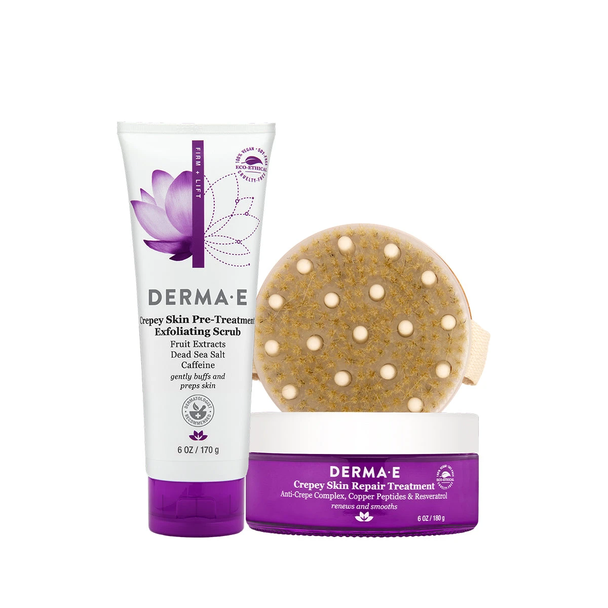 Get ready to transform your skin with our Body Firming Set! This powerhouse trio includes our Crepey Skin Repair Treatment, a smoothing Exfoliant Scrub, and a rejuvenating Dry Brush. Together, they work to firm, exfoliate, and refresh your skin, leaving it feeling silky smooth and looking visibly toned. Perfect for a spa-like experience at home.